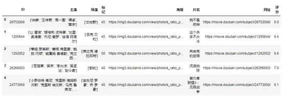 M _ ID = IDataFrame({ '主演':[演员],'海报':[封面],'导演':[导演],。Tag': [star],' title': [title],' website ':[URL]})