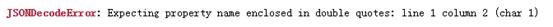 错误似乎表明我们是最外面的引号,这就导致了问题。目前我们使用双引号(“{'a':1}”)。只能用单引号(' {'a':1} ')吗?先试试: