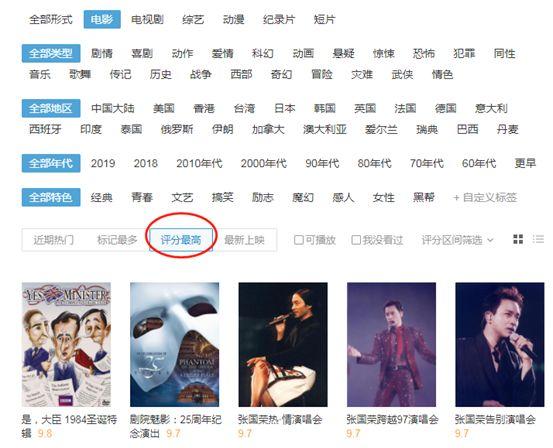 至于电影推荐和排名,豆瓣是个好地方,但是TOP250电影的排名太经典了,有点老套。想点新的,就按照默认的“最高分”Emmm排序,结果好像比较小: