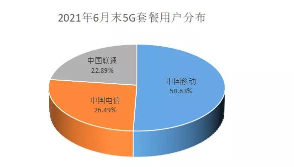 2021年6月底,中国联通36.51%,中国电信36.18%,中国移动26.51%,中国联通第一。但因为中国联通的移动用户最少,所以中国联通5G套餐的用户数量还是比另外两家少。从另一个角度看,中国联通的5G潜在用户最少,这也会影响中国联通5G用户的继续发展。