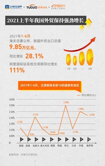 日前,跨境电商B2B平台阿里国际站发布最新一期“新外贸指数”显示,今年上半年该平台交易额同比增长111%。
