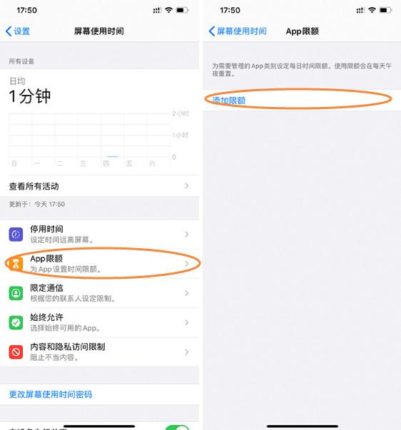 以上步骤完成后,跳回屏幕使用时间界面,点击APP Limit,再点击Add Limit。