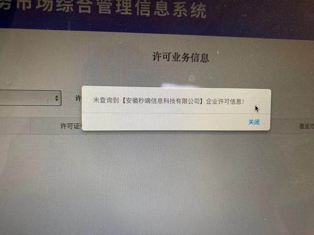 无法查询安徽秒技信息技术有限公司增值电信业务经营许可证