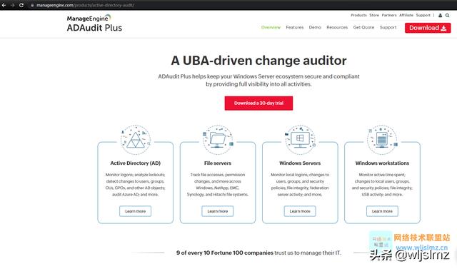 2、Manage Engine ADAudit官网链接https://www.manageengine.com/products/active-directory-audit/