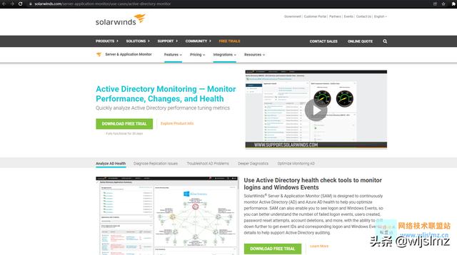 3、SolarWinds官网链接https://www.solarwinds.com/server-application-monitor/use-cases/active-directory-monitor
