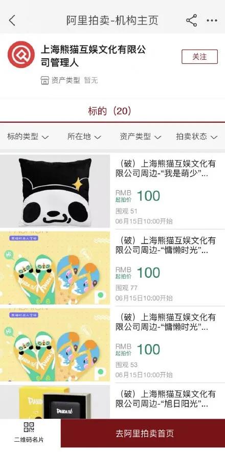 6月3日,有媒体发现上海熊猫互娱文化有限公司在阿里拍卖中挂出一批福袋。