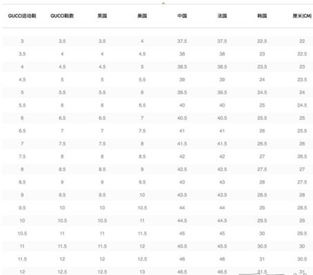 很多买了gucci小白鞋的网友反映尺码太大。下面是gucci小白鞋尺码对比表。
