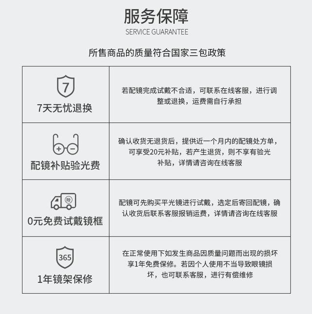 现在网购镜架的时候在详情页的最下方,一般都会有这款眼镜的详细参数。当你在网上试戴的时候,如果你觉得尺寸和重量都没问题,不妨根据镜架的身份证寻找一个完美的替换镜架。