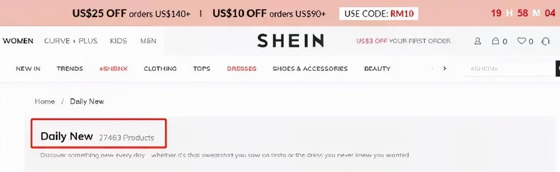 在今年某一天的页面上,SHEIN披露了《每日新报》的新号,达到了27463。