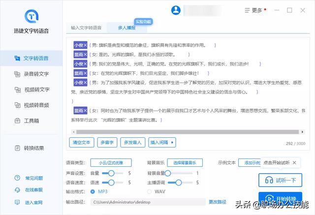 如果是有多个角色和情绪词的文案,就需要转换成语音。