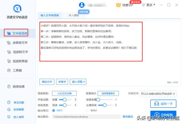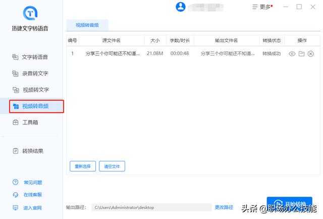 ③最后点击“开始转换”,文语转换就完成了,速度很快!