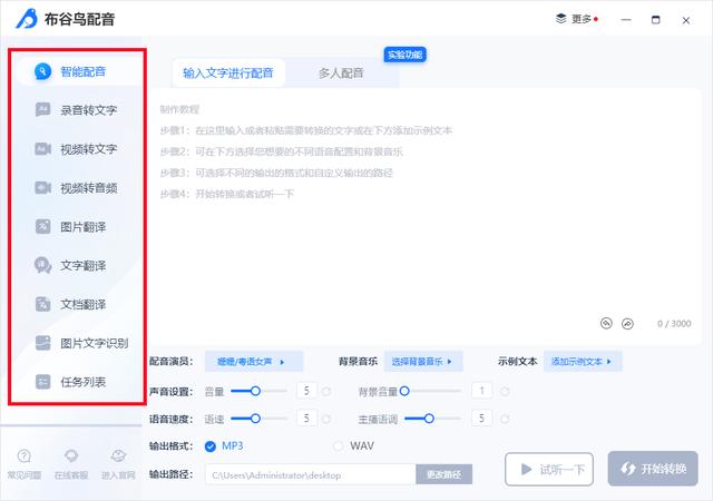 软件的使用可以说是相当简单!输入文本,你可以很快地把它变成语音,即使是小白,你也可以轻松上手!