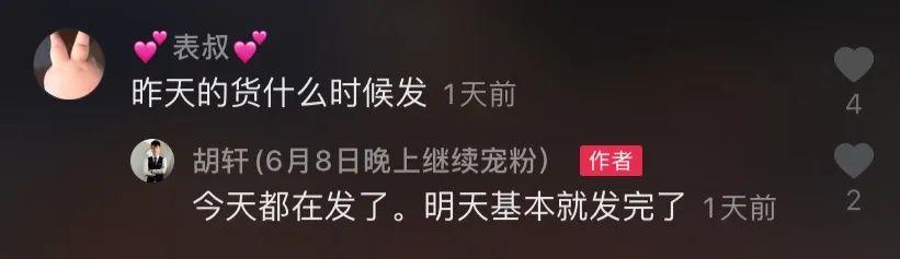 卖了1400万的那家,我们还没来得及消化销售成绩的喜悦,订单的爆炸式增长给刚刚运行不久的海运物流科带来了极大的挑战,发货缓慢导致投诉率上升。从那以后,胡璇更加重视售后服务。一场销售额超过100万元的直播,24小时内送达。“以后我会继续挑战24小时或者48小时内送达,超过时限免费”[S2/]。
