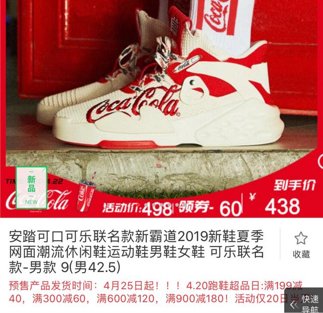 看起来很牛逼,但是只有试过才知道好不好。其实我们不太喜欢安踏和可口可乐,但是这个联名设计很有特色,价格也不算太贵。天猫首发活动价,所以打算买一双情侣鞋。我姐一听安踏说不稀罕,就不相信我的眼光,我就更想买了。