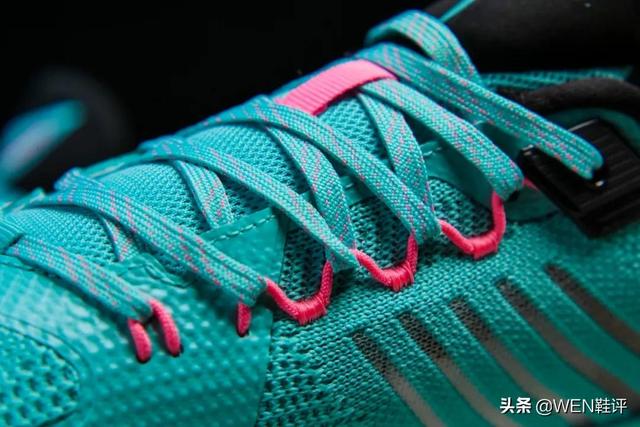 作为一双低帮运动鞋,这双鞋有6组鞋带扣,第一组采用飞线设计,最后一组有额外加固。