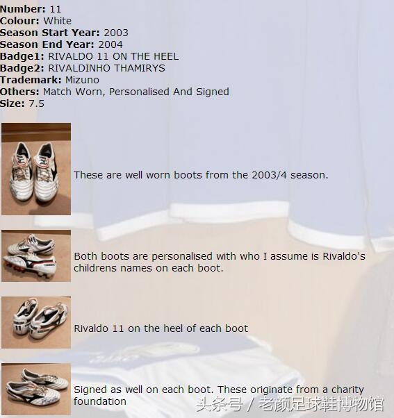 巴西天才里瓦尔多一直用的都是非主流足球鞋,水野就是巅峰时期用的战靴。据说他的美津浓足球鞋的尺码其实是uk7.5,也就是41码jp265,但不知道是否准确,毕竟他身高1米86。