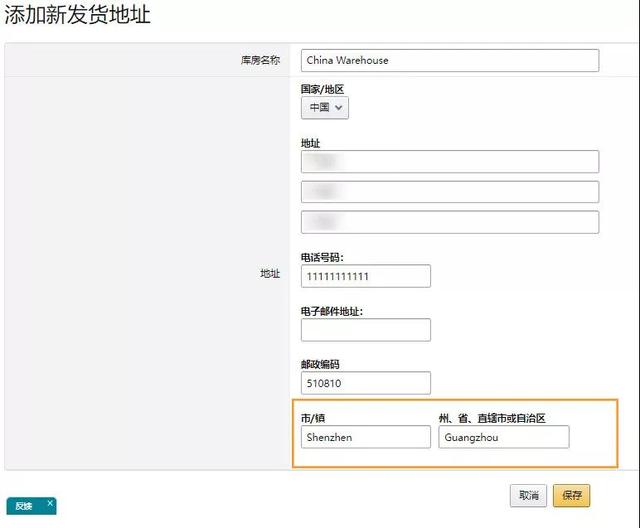 保存包裹尺寸后,在[管理您的运输地址]中添加或编辑您的仓库地址。