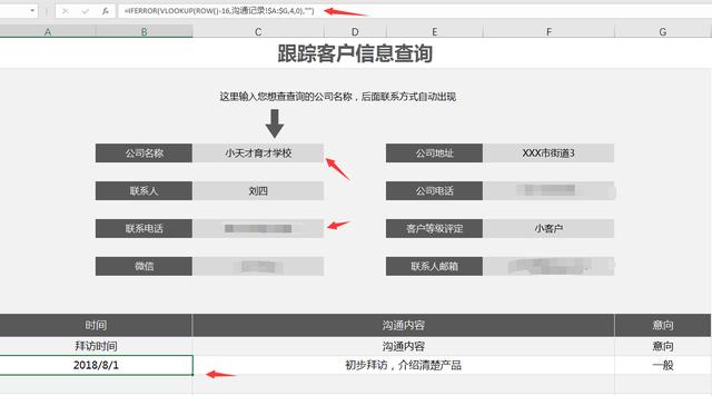 客户信息查询表在这里选择公司信息,其他信息自动生成,方便参考。