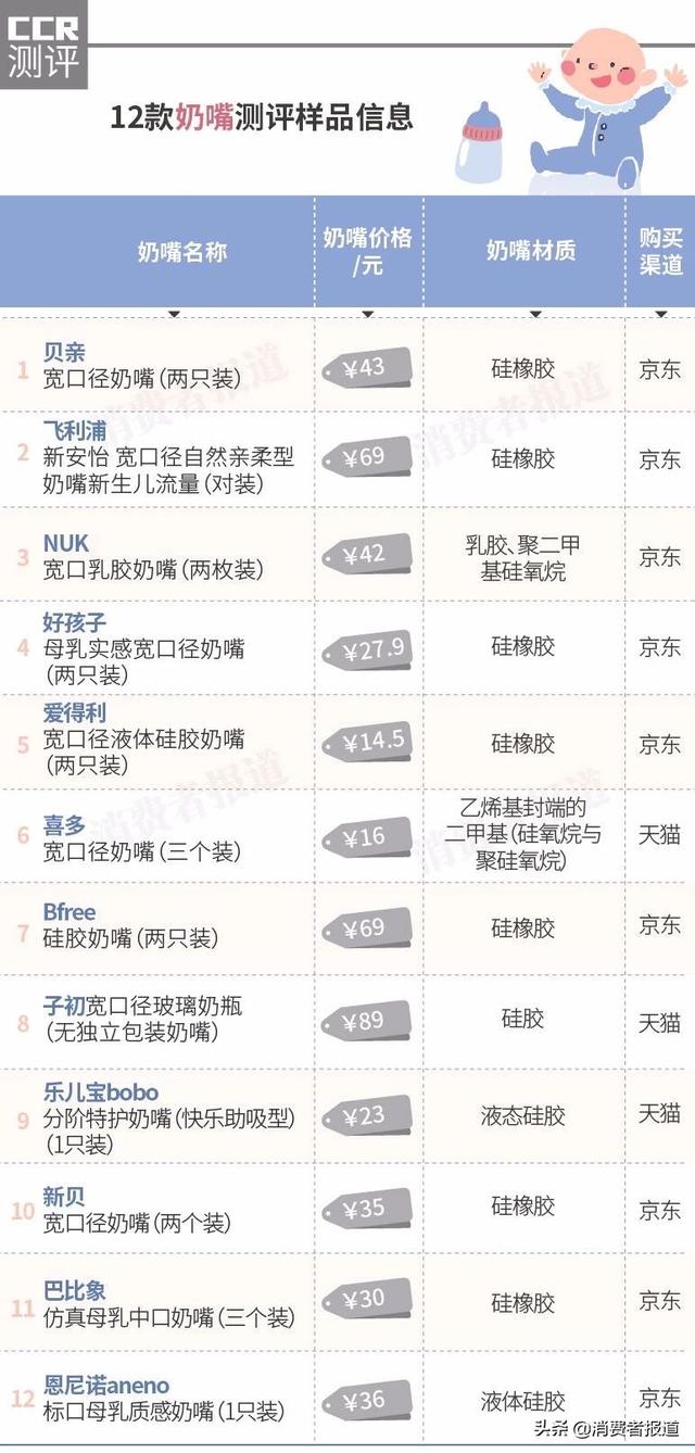 观察12个奶嘴的材质信息,消费者负责人发现,与大多数硅胶材质的奶嘴不同,