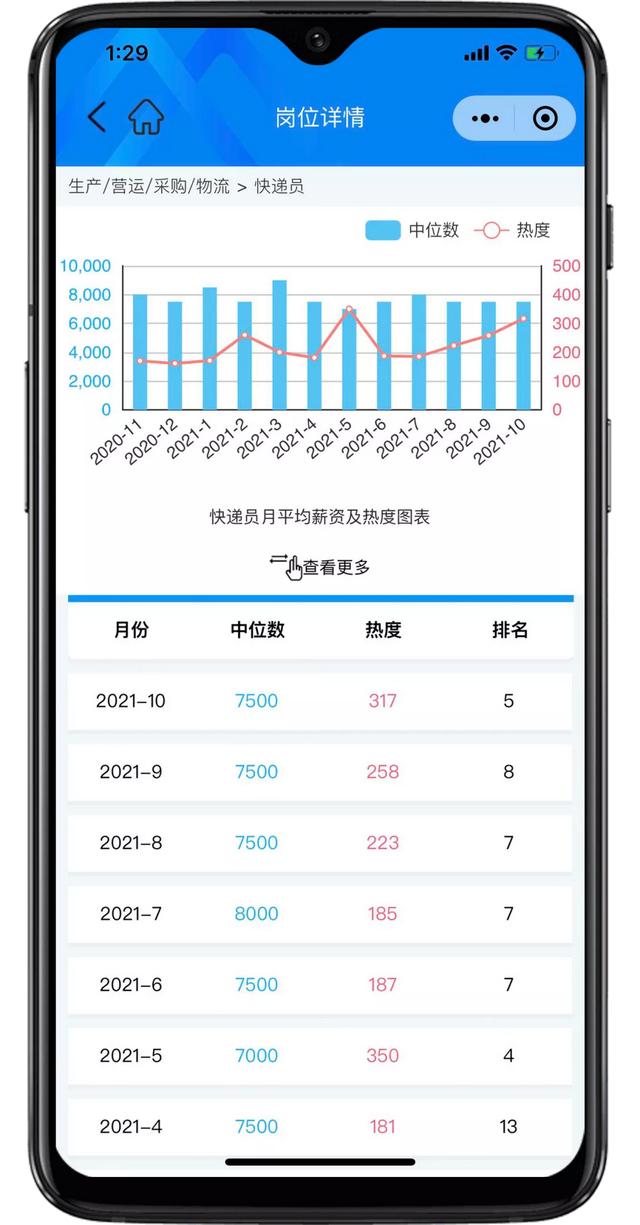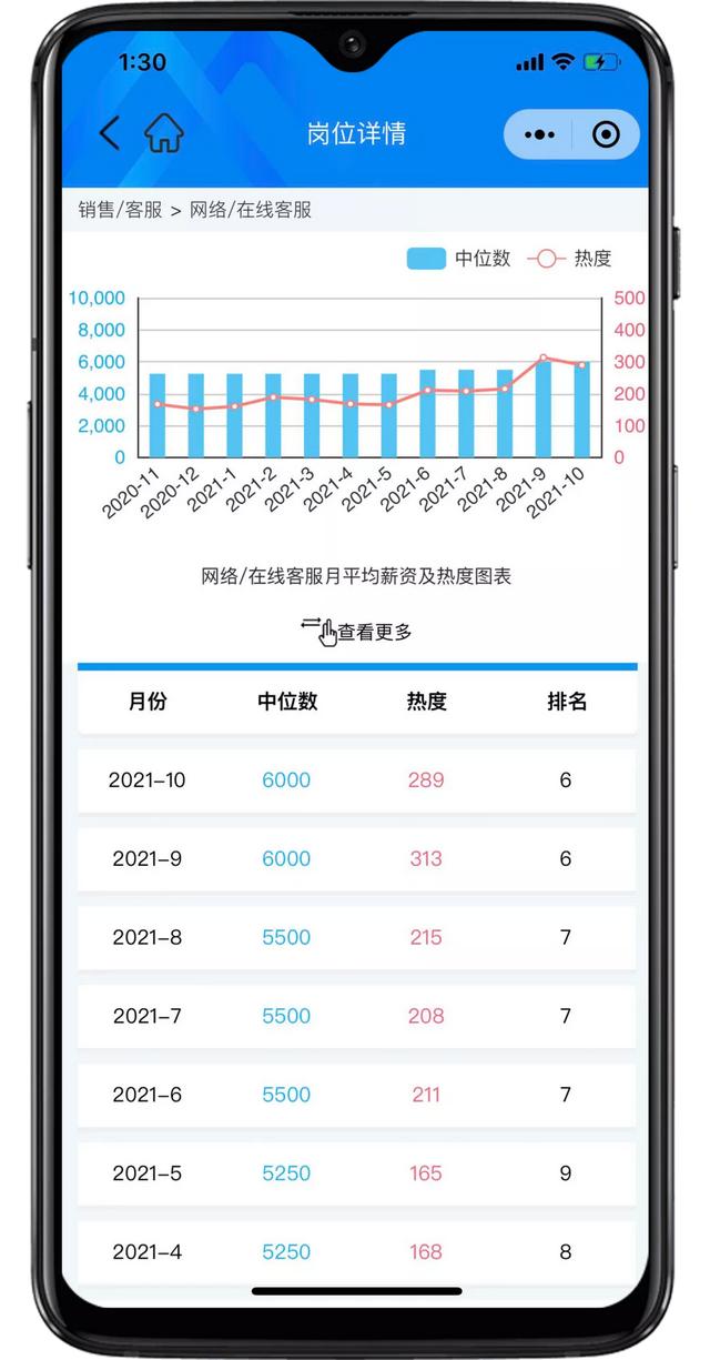 0110月上海招聘需求最高数据显示,2021年10月,上海的招聘需求最高,销售代表职位继续排名第一,薪资中位数不变,为11500元。第二名,Java开发工程师薪资中位数17500元,招聘热度上涨29.48%,从9月份的第四名升至10月份的第二名。项目经理职位热度保持在第三位,招聘热度上升5.83%。