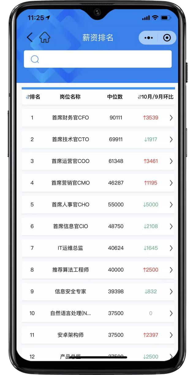 师旷薪酬10月数据显示,高薪行业“/s2/] CFO”的薪酬中位数从9月份的86572元增长到90111元,“/s2/]首席运营官”的薪酬中位数从9月份的57887元增长到61348元。