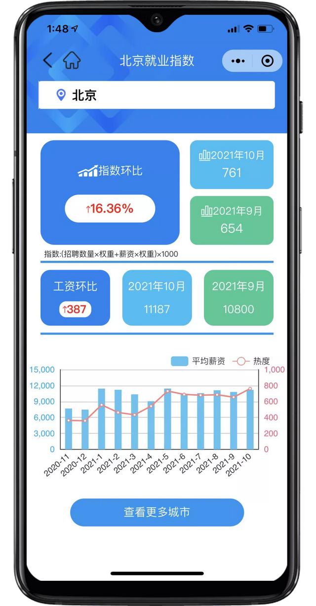 师旷薪10月数据显示,北京社会招聘指数大反弹,招聘热度环比增长16.36%,疫情后15个月重回前3。