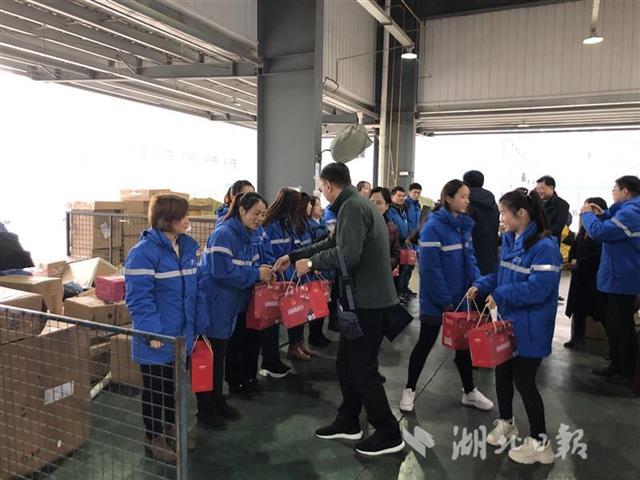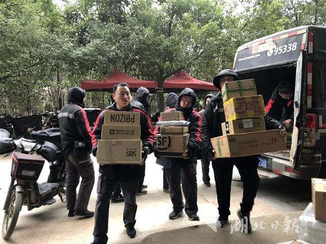 在武汉某快递网点,快递员正忙着搬运包裹。