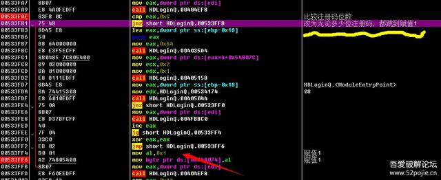 其次,对比数值,不注册就跳。为了安全起见,我们将取消JE线的NOP。