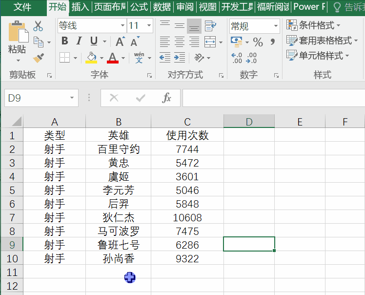 下表是某战区某段时间内射手英雄使用次数的后台统计。我们想知道哪个英雄更受玩家欢迎。