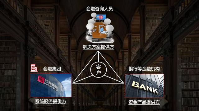 容晖集团是一个为容晖合作伙伴的咨询服务提供系统支持的平台。金融合伙人是为客户提供解决方案的人;银行等金融机构是资金的提供者。