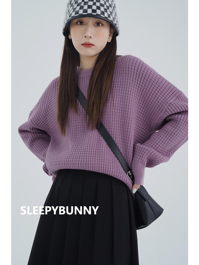 这款华夫饼干的纯色毛衣有3种颜色和尺码S-L。
