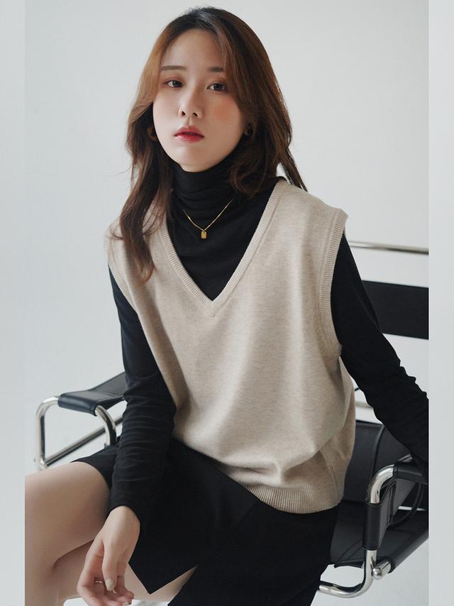 芥末绿色的高领毛衣看起来很优雅。