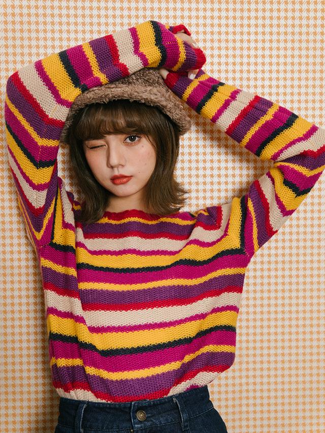 款式条纹毛衣,慵懒休闲。