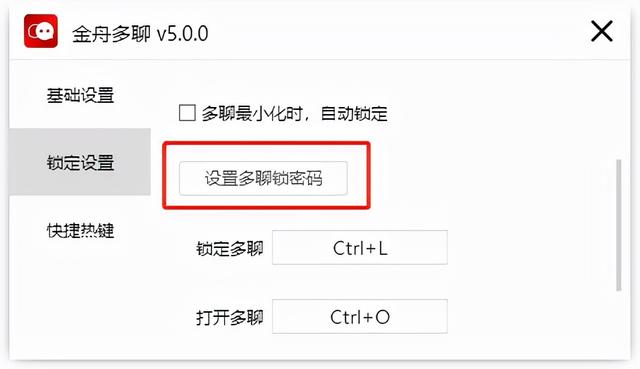 在下面的弹出窗口中,点击选择“设置多聊天锁密码”;
