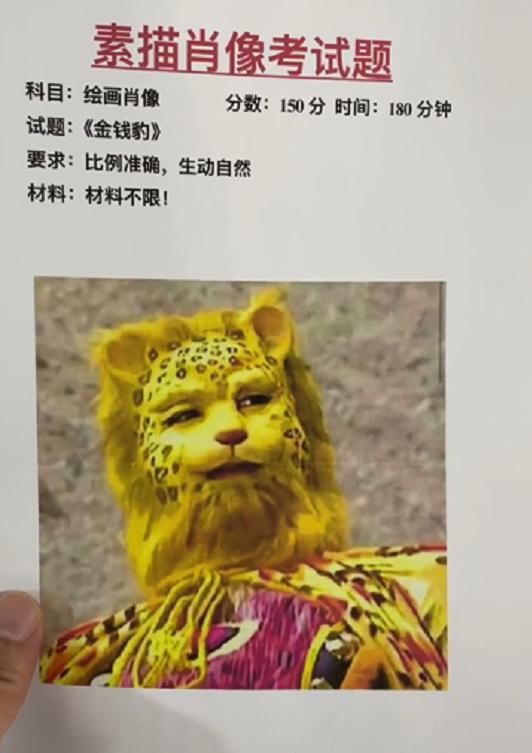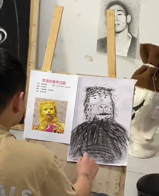 为了增加艺术生训练的兴趣,调动学生的积极性,老师们也想尽办法让练习材料与时俱进。也许学生练习的时候就不会那么无聊了。一般来说,谁流行就画谁。过去,沈腾、贾玲等明星陆续出现在艺术生的考题中。没想到,老师这次的考题根本不是“人”,而是“豹”。