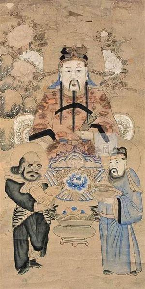 手持水板,威风凛凛,两旁有天官。