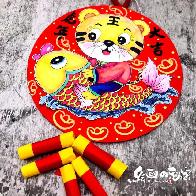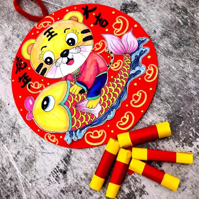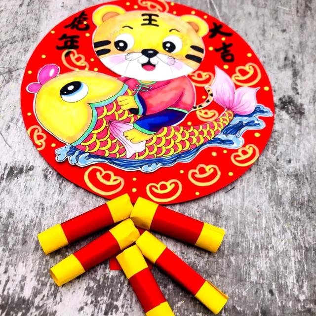 1.了解虎年的百科知识;2.学习平面绘画和立体手工相结合的画面效果;3.学习如何制作立体鞭炮;4.学会如何合理使用漂亮的配色和渐变色;5.学习虎年相关元素的绘画;
