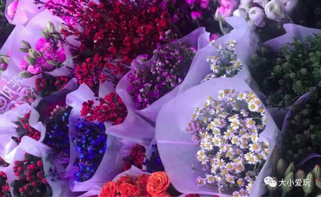 从进门的那一刻起,你就能看到种类繁多、怒放的鲜切花。各种玫瑰、百合、菊花、满天星、康乃馨、粉草,连稀有的进口品种都不在话下。花束可以成束购买,也可以自由搭配。价格比外面花店便宜。大概二三十分钟就能买到一束。