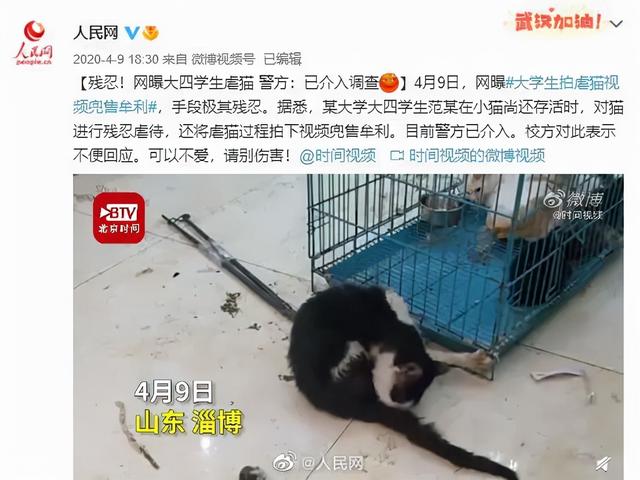 山东某高校学生范某用火烧、电击、剥皮等恶劣手段将猫折磨致死。他拍摄了整个过程并在网上出售,被退学。