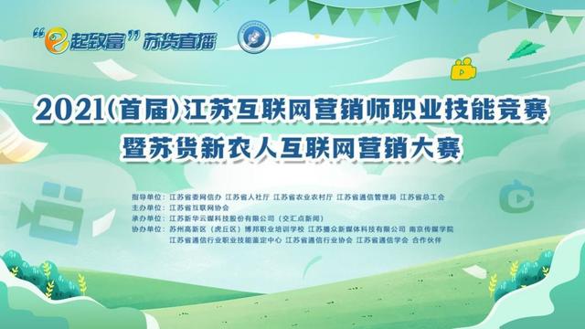 为规范网络营销人员营销行为,促进江苏网络营销人员能力全面提升和行业健康持续发展,在省委网信办、省人力资源和社会保障厅、省农业农村厅、省通信管理局、省总工会的指导下, 省互联网协会、新华云传媒(交汇点新闻)等单位将联合举办2021年(首届)江苏省网络营销员职业技能大赛、江苏省新农人网络营销大赛。