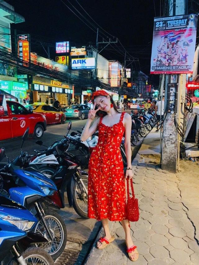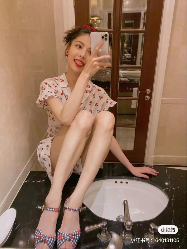 谁能看到钟姐穿印花连衣裙不迷茫?这条粉色印花裙根本配不上她的“大色”。适当的皮肤暴露,简单的鞋子和配饰让整件衣服不凌乱,气氛也恰到好处。