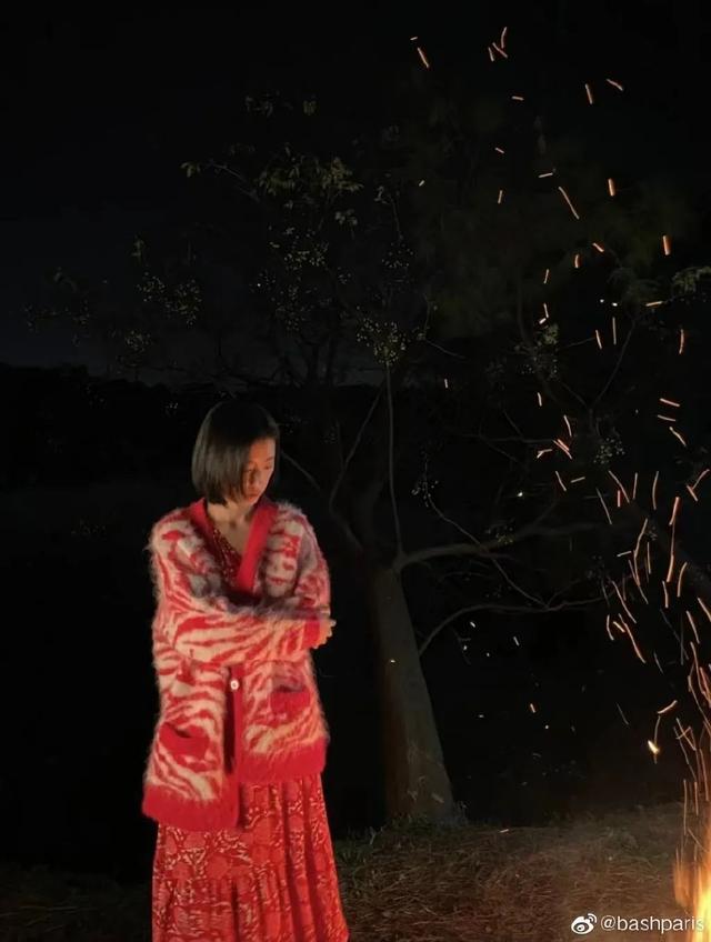 略带复古钩针风格的“奶奶开衫”是钟杰温柔浪漫的秘诀。搭配修身印花超短裙,两个小铜耳环点缀卷发,透露出浪漫复古的法式风情。