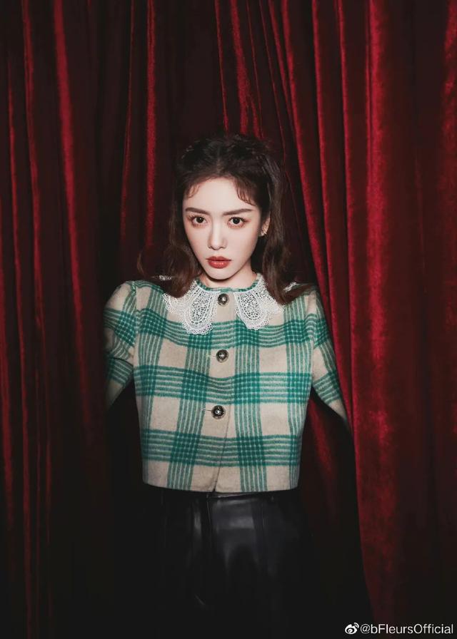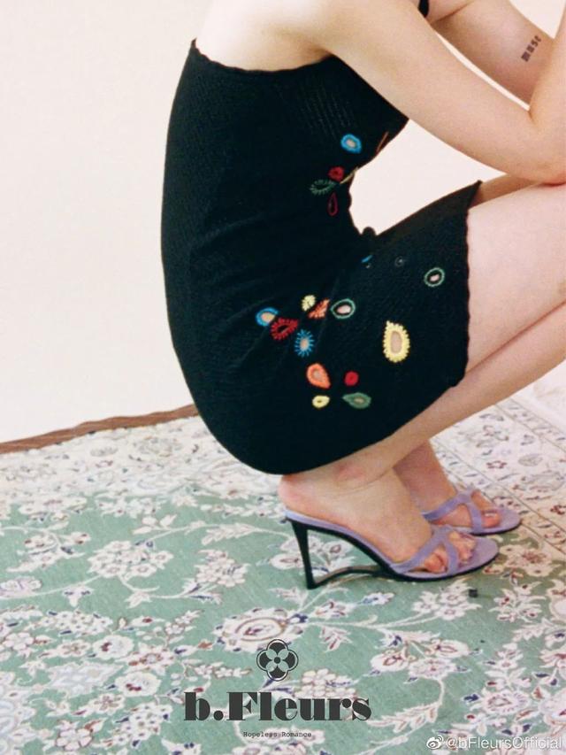 这款开衫搭配套裙的look,出自钟姐国内最受欢迎的设计师品牌b.Fleurs,是一款时尚的时装品牌。