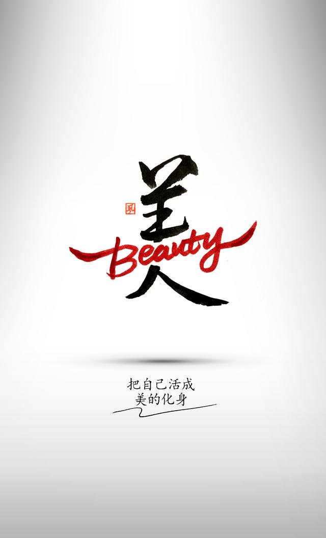 “美”字还是用同样的笔触。英语中的Beauty就是美丽的意思。以下是个人的话。组合很巧妙。把自己活成美的化身。
