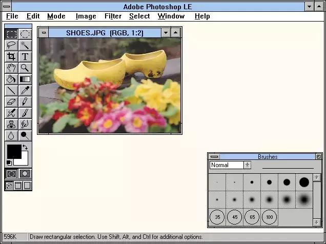 这时的界面真的是一个“线框”,几乎没有多余的元素。而且很神奇的是,无论哪个版本,界面多么简陋,PS的工具栏总是满满的,不要以为只有你的设计师才能快速掉头发?