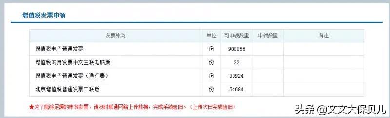 (3)根据相应票种的可用数量,在限额内申领发票。
