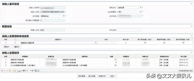 注意,系统会自动带出符合条件的发票种类和数量,我们不需要重新填写。