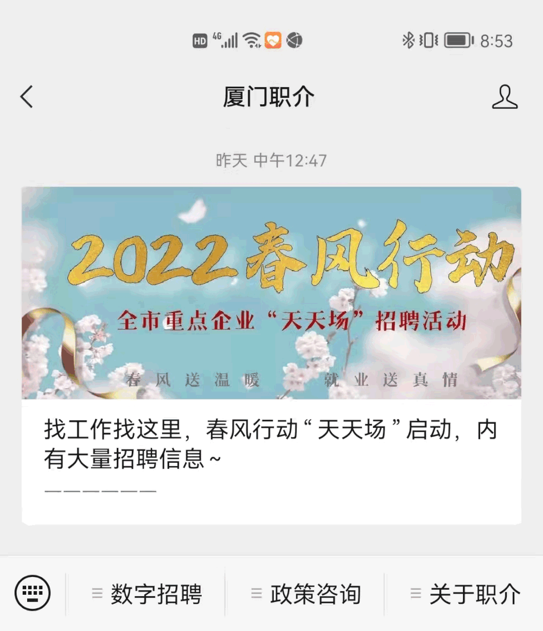 渠道二:“厦门职业介绍所”微信微信官方账号