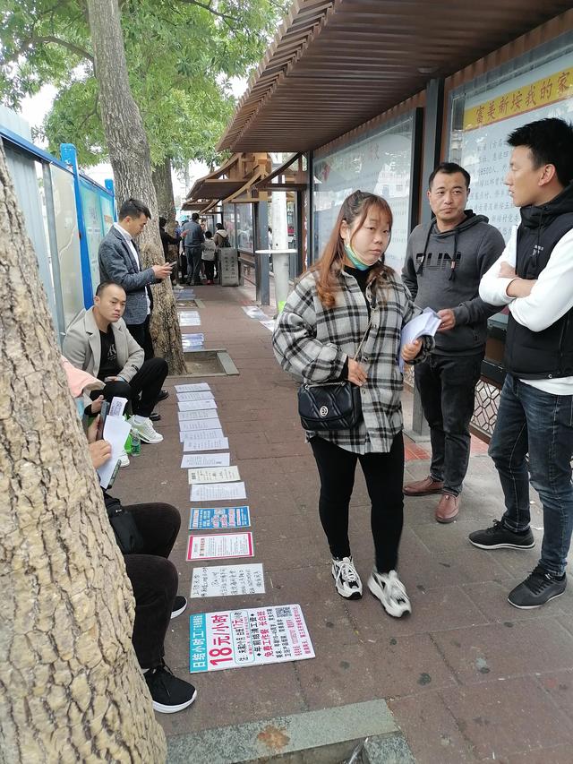 从图中可以明显看出,找工作的人很少,招聘人员也无所作为。地上有各种企业的招聘信息,可惜没人管。