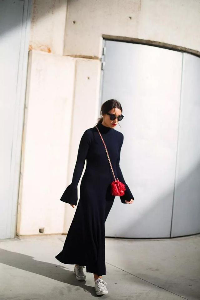 ▲温柔的针织裙,来一双匡威帆布鞋。不同的风格更有调性,但看似不协调的单品却能相处得很好。